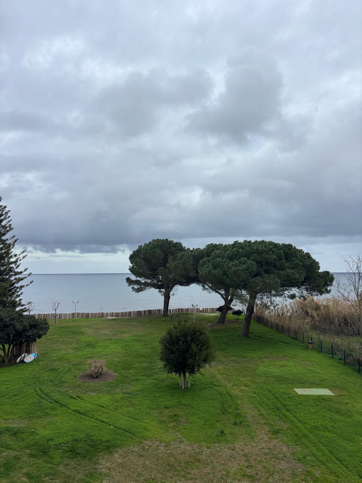 L’espace extérieur est un véritable atout : une jolie terrasse de 5,93 m2, exposée Est et Sud, offrant un excellent ensoleillement et une vue dégagée sur la mer et les espaces verts de la résidence.