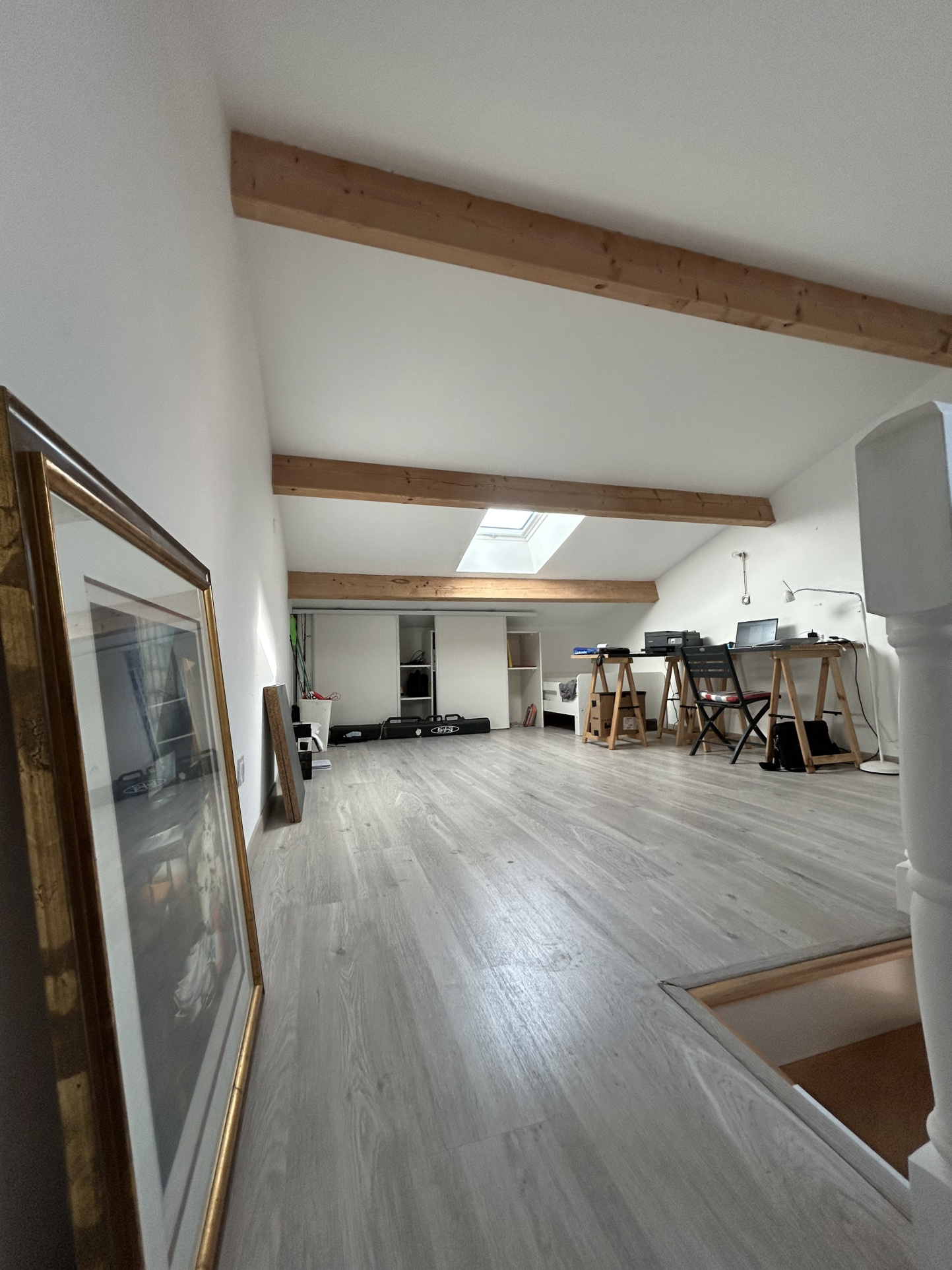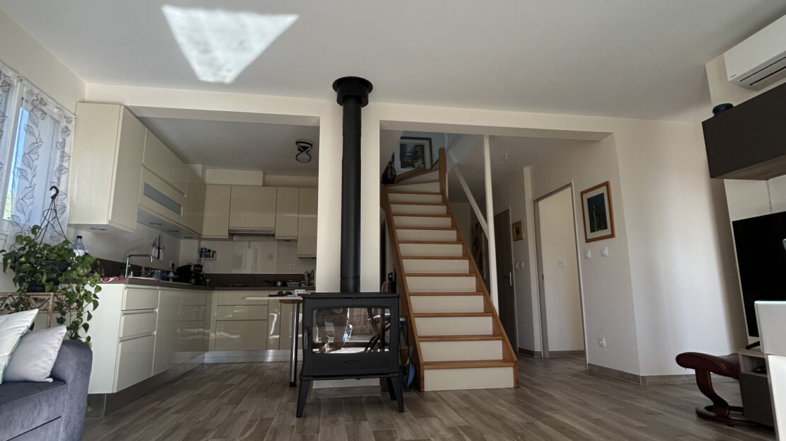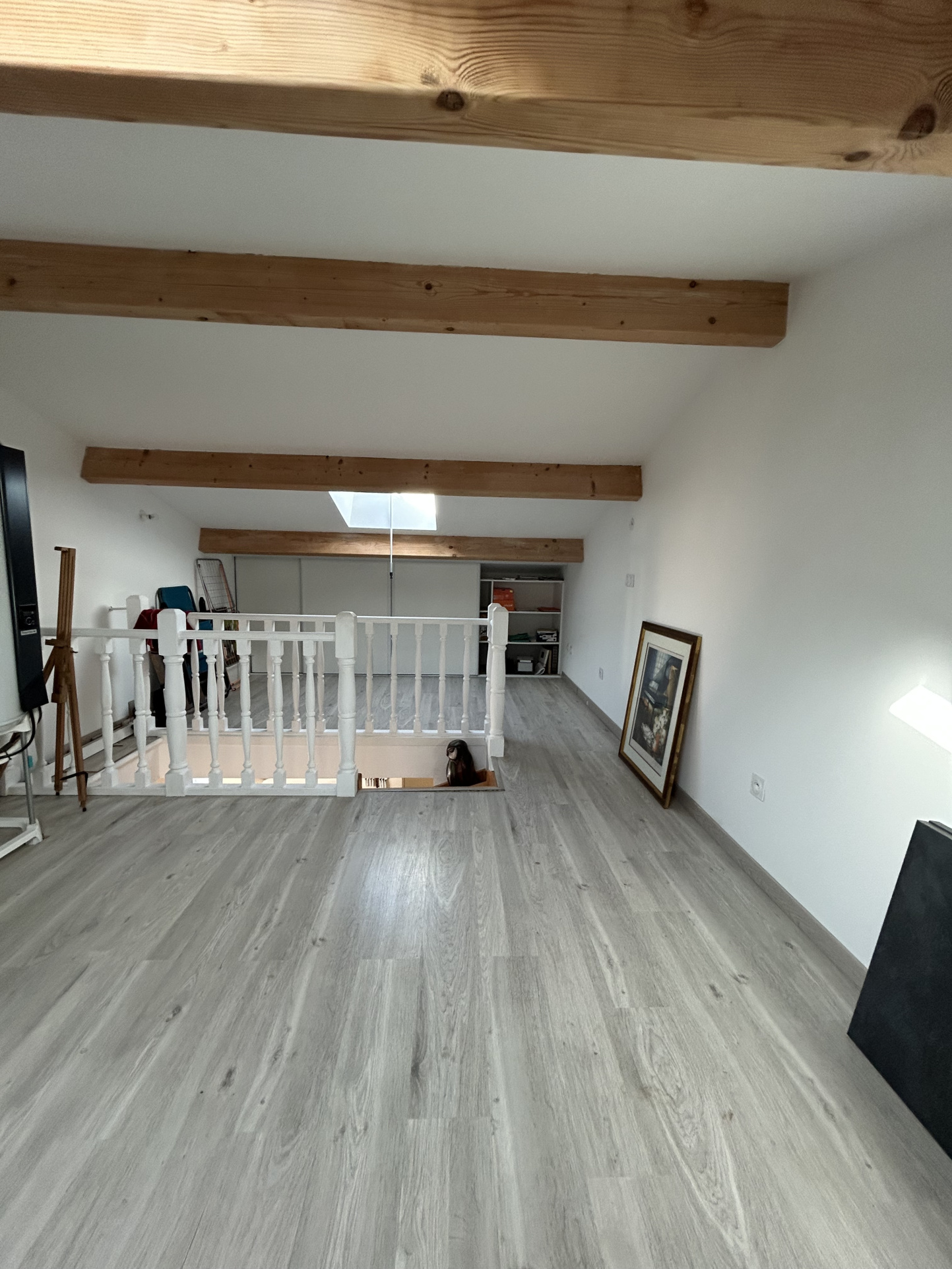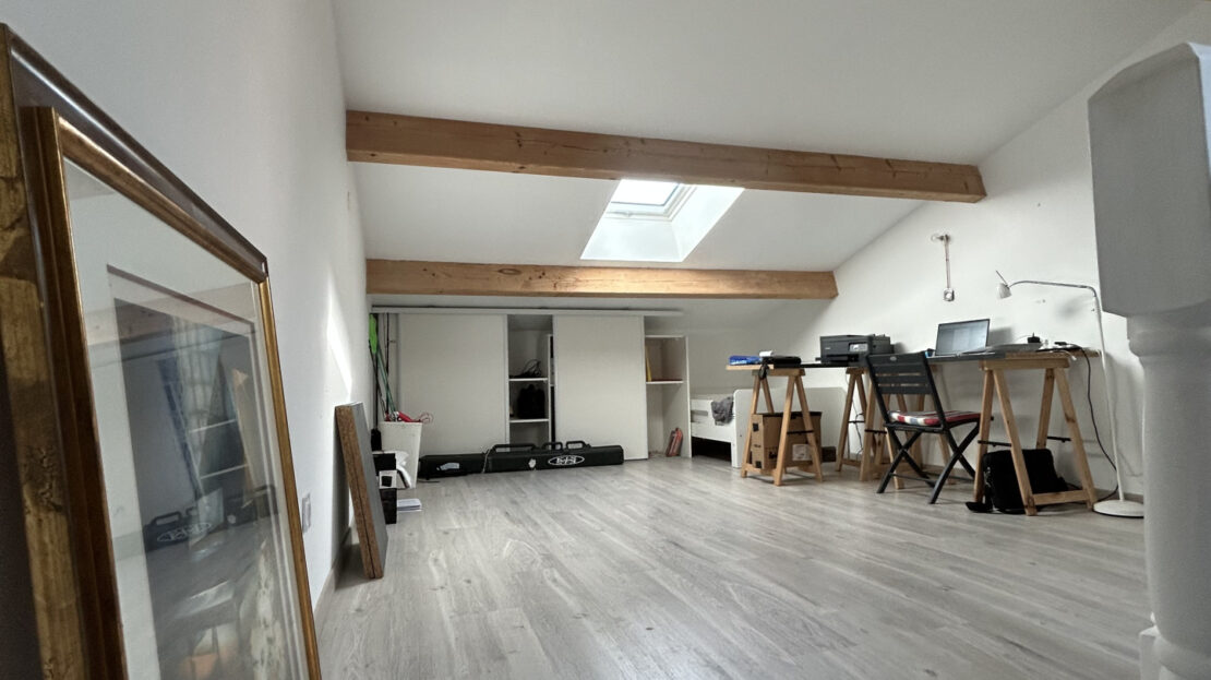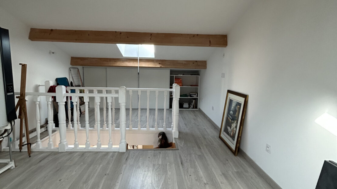 À l’étage : une mezzanine offrant un espace supplémentaire idéal pour un bureau ou une 3e chambre d’appoint