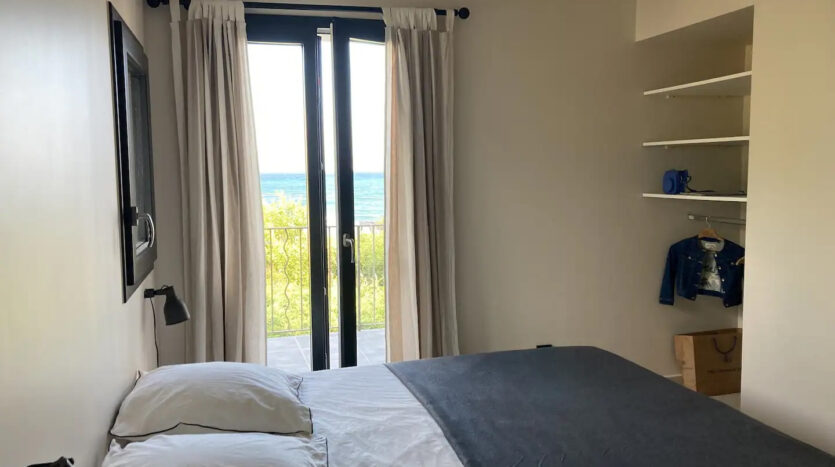 Une chambre avec salle de bain et terrasse offrant une superbe vue mer,