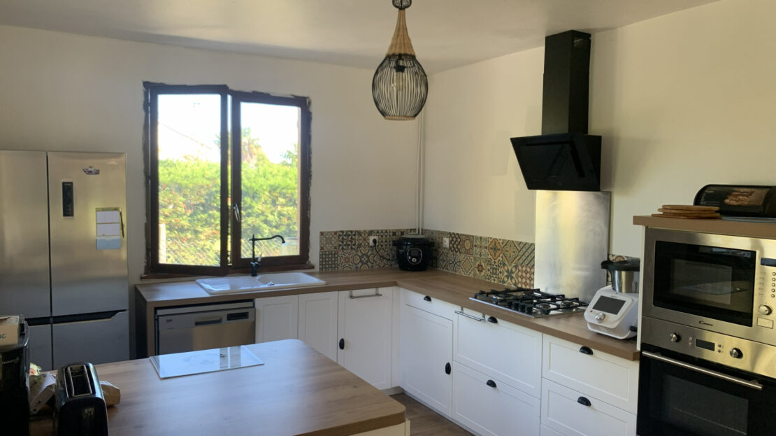Située dans un environnement calme et recherché, cette charmante maison de plain-pied de 95 m2, mitoyenne uniquement par le garage, a été entièrement rénovée avec goût et matériaux de qualité.