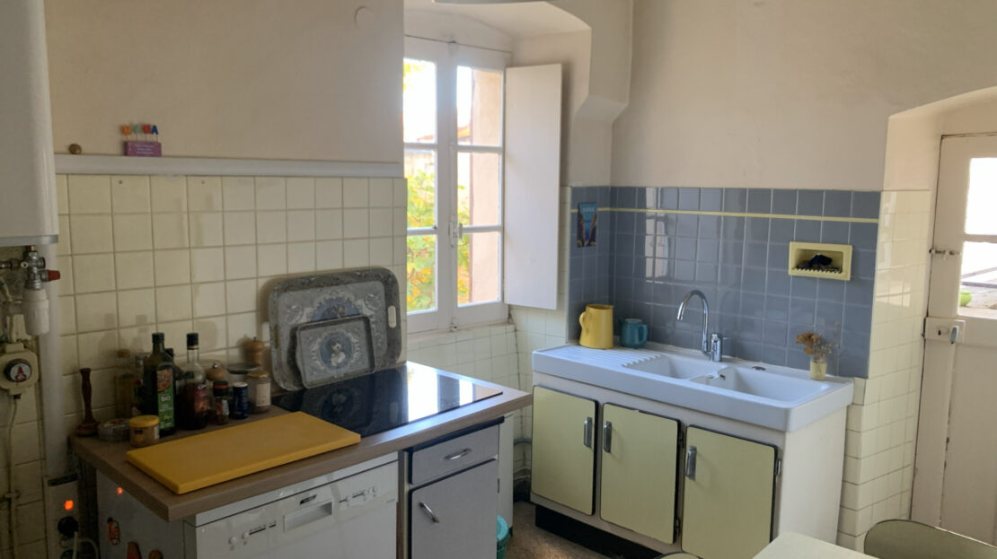Une maison de vilage au caractère authentique de 103 m2 comprenant au rez-de-chaussée, une entrée, un séjour avec cheminée, un salon, une cuisine séparée, un wc.